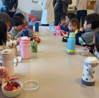 長い間食べ渋っていた子が、ものすごい勢いでお弁当を平らげてくれる日が続いています。外でよく遊ぶことから、お昼の時間はお腹ぺこぺこなんでしょうね。お母さんの作るお弁当をみんな美味しそうに食べています。スプーンフィードが必要だった子も、最初から最後までしっかり自分で食べられるようになってきました。