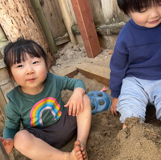 さくのちゃんは、マイペースでおしゃべりが上手な女の子。いつの間にかみんなの中心にいるような子でした。妹のかやのちゃんも数回の保育でしたが、お姉ちゃんに甘えつつ、少しずつ遊び始めたところでした。