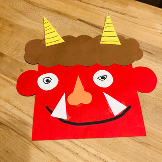 鬼の工作を楽しみ、みんなで風船の鬼退治、豆まきをしました。