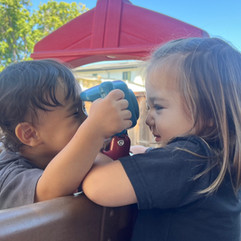 おもちゃを取られた、作っていた線路を壊された、、、、「うえーん」と泣いて大人に助けを求める子が時々います。さて、泣く前に何ができるかな?と考えさせる機会を設けています。大人が介入すれば、問題はすぐに解決できますが、お話ができる子には自分がどうしたいか、相手にどうしてもらいたいか、どうしたら解決できるのかをできるだけ自分の力で考えるよう促しています。もちろんどうしようもできなくなる時もあるので、その時はすぐに大人がサポートしますが、うまく解決できた時の喜びは大きな成功体験になり、次にトラブルが起こった時に再度考え、行動に移せるようになります。