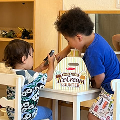 小さい子が入ったことで、年上の子がよく可愛がってお世話をしてくれます。おもちゃをシェアしてくれたり、一緒にアイス屋さんごっこをしたり、お弁当を食べさせてくれようとした子もいました。一年前は一番小さかった子たちが、こうして異年齢のなかで大切なことを学んでいます。